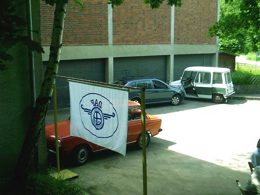 Winfried hat die Flagge und den Kalmar aus der Halle geholt, ich