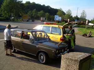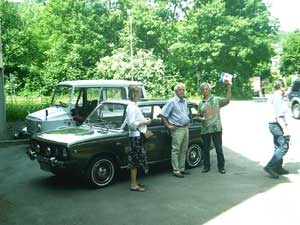 Von links nach rechts : Probefahrtauto und -beifahrer, Rita