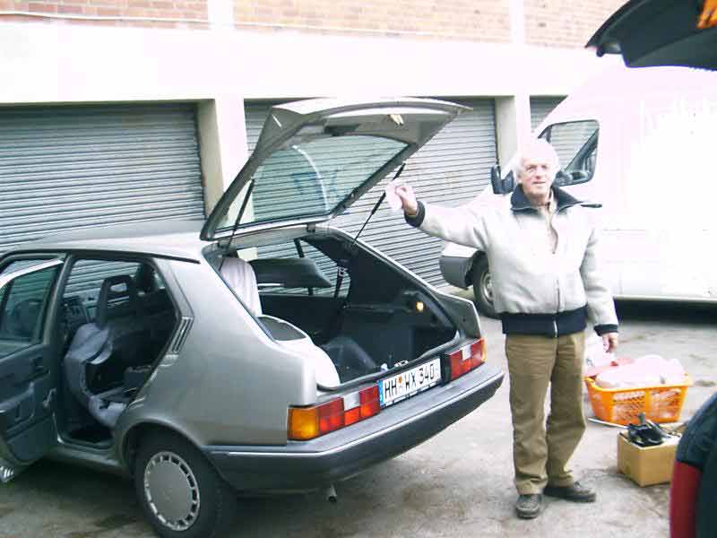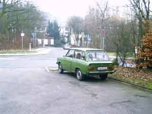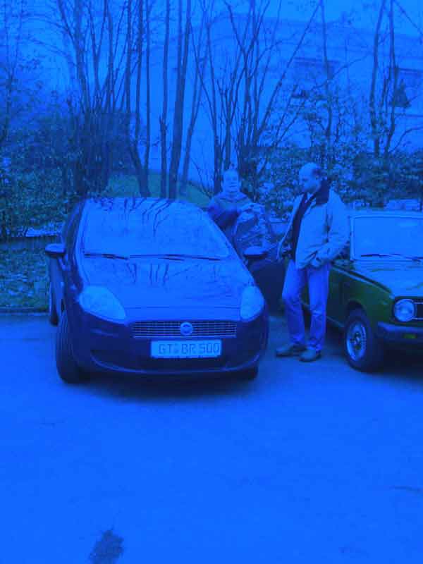 Klaus seinen neune blauen Familien-Fiat mit Halbautomatik. Der war so blau, das färbte sogar auf´s Bild ab ...