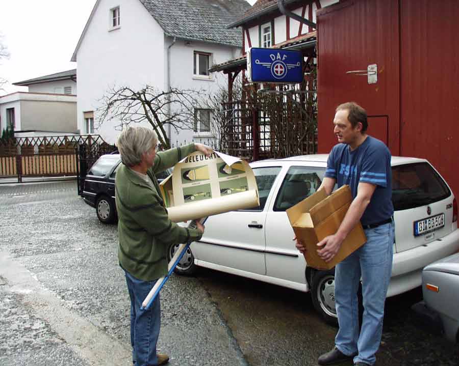 Da Winfried zur Zeit die Techno Classica vorbereitet,und sich div. Ausstellungsstücke in ganz Deutschland zusammensucht, sind wir am Sonntag nach Wettenberg gefahren. Diesmal habe ich den Weg problemlos gefunden und wir sind mit Winfrieds Fiat Panda glücklich in Hessen gelandet. Irgendwie war es einer dieser Tage, an denen man sich einfach treffen muss. Aus dem Sonntag-Nachmittag wurde ein gut besuchtes kleines Daf-Treffen mit neuen und alten Bekannten. Auch die Rückfahrt am Abend verlief problemlos. Die Techno Classica rückt näher...