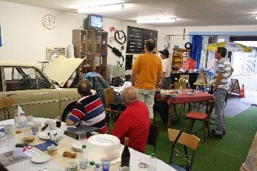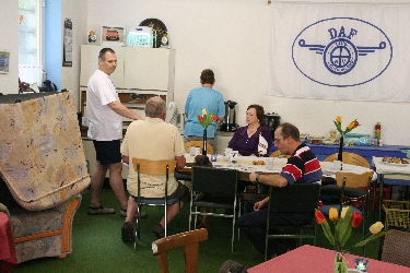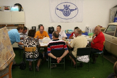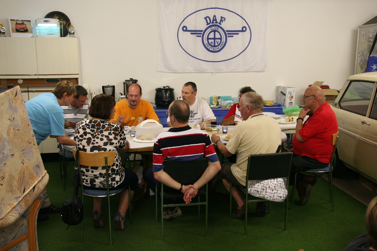 Nach reichlich Sonne und geblendet vom Chrom ging es wieder zurück zur Clubhalle. Dort warteten schon neue Gäste mit neuen DAF-Geschichten aus der Schweiz: Ein 33er mit Parksperre !