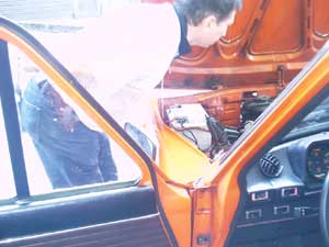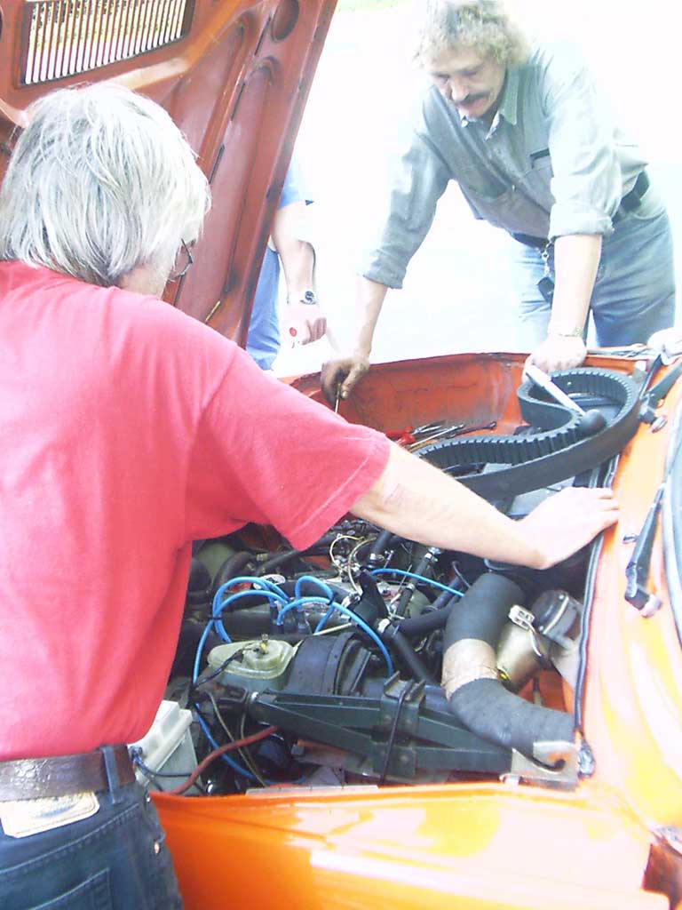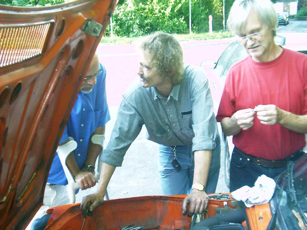 Kurz bevor Marion fahren durfte, hat Wolfgang die Arbeit abgenommen und für gut befunden, und anschließend den Wagen freigegeben !.