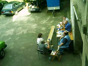 Gemütliche Runde, es fehlen nur die Werktätigen und Detlev (am Buffett) ...