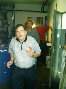 Klaus-Peter und Marcel tun so, als würden sie sich angestrengt über Klaus-Peters Umbau unterhalten ...