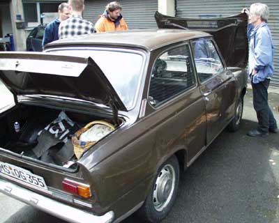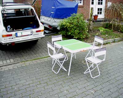 anständigen Holländer gehört, findet sich sogar ein zeitgenössiger Campingtisch im Kofferraum. Nach Übergabe der Fahrzeugpapiere, dem Versprechen,den Wagen in Ehren zu halten und Begutachtung