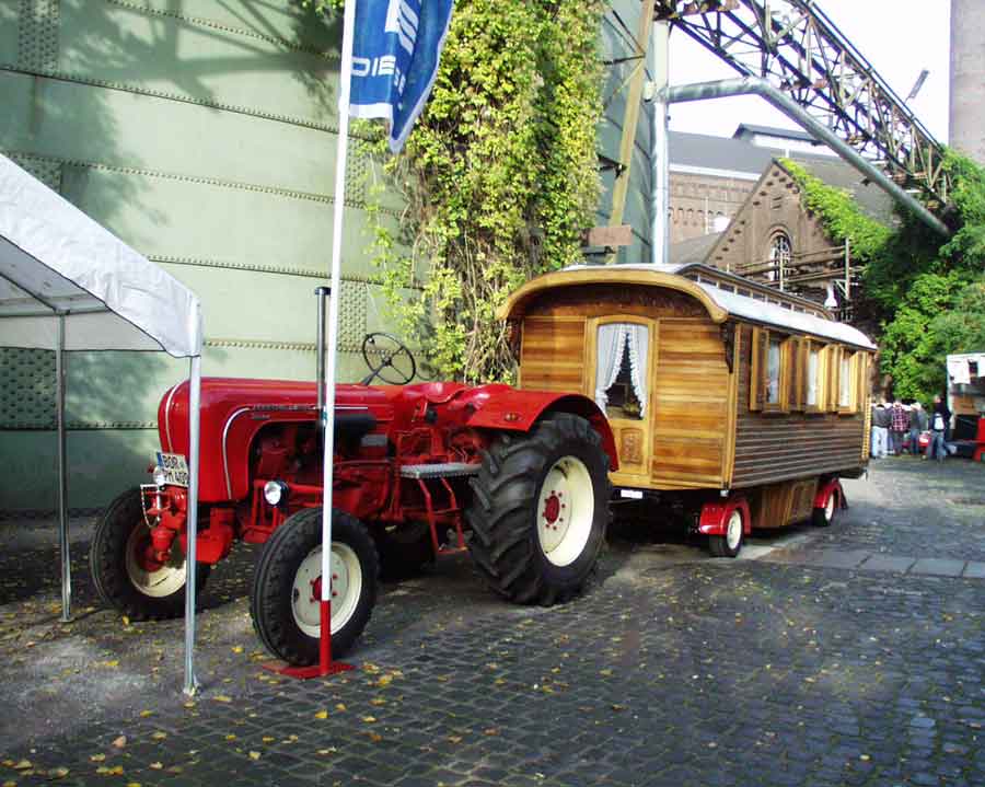 ![]() Porsche Traktor mit schönem alten Kirmeswagen |