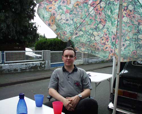 Die Autos wurden an diesem Tag längs geparkt, der Tisch mit Clubwerbung aufgestellt, der Wohnwagen aufgebaut, die Clubfahne gehisst und ein paar Stühle
