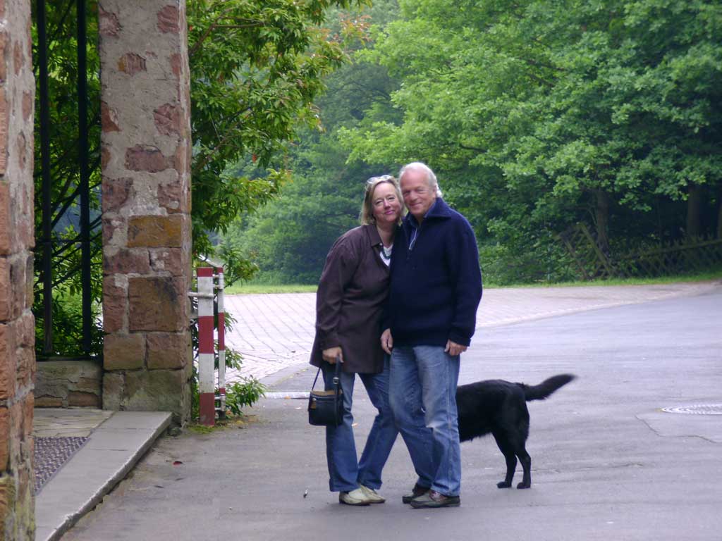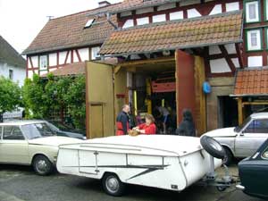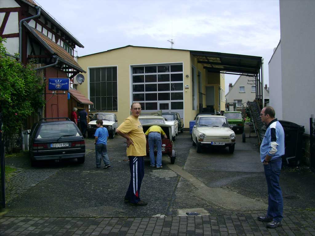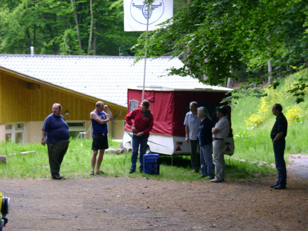 Heinz-Jürgen dirigiert die Ankommenden an, um und hinter sein Haus...