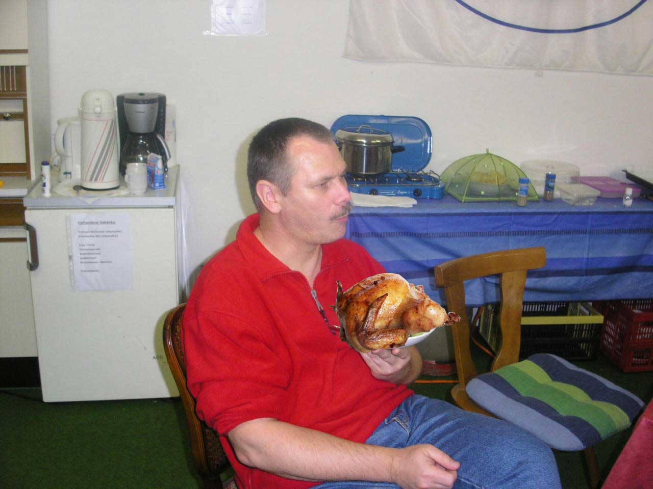 Wo plötzlich das Hähnchen herkam ??? Detlev kommt ja immer mit vielen Koffern und Kaffeesäcken und behauptet darin wäre der Daf-Basar...