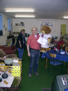 Auch der Techno Classica-Bär hat zum Herrchen gefunden ...