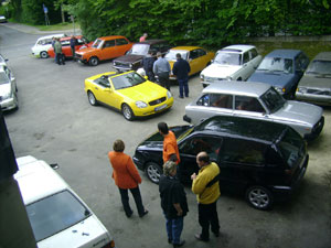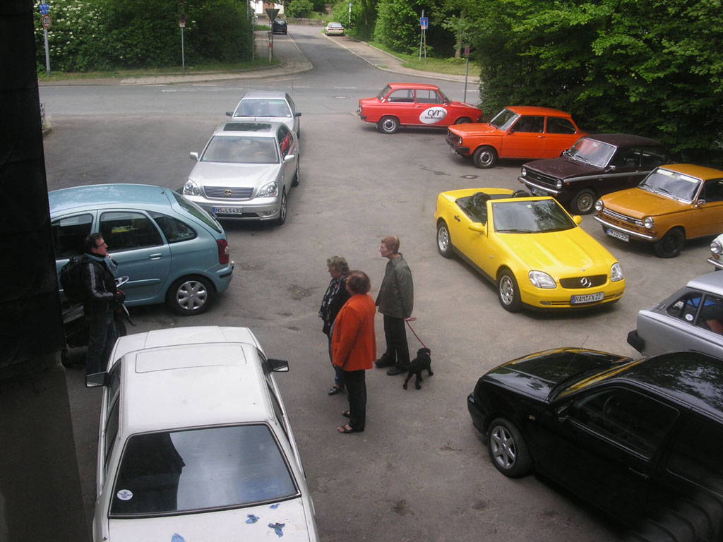 Parkplatz gut gefüllt, u. a. mit vier "Fremdfahrzeugen" ...