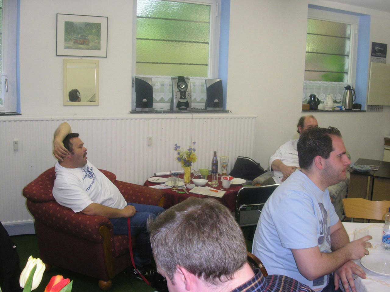 Da hat man Detlev am Wickel. Er hatte sich 3 Würstchen auf einmal genommen...