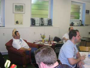 und Jockel unterhält alle, die keinen Sitzplatz mehr gefunden haben mit technischen Anekdoten...