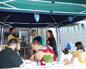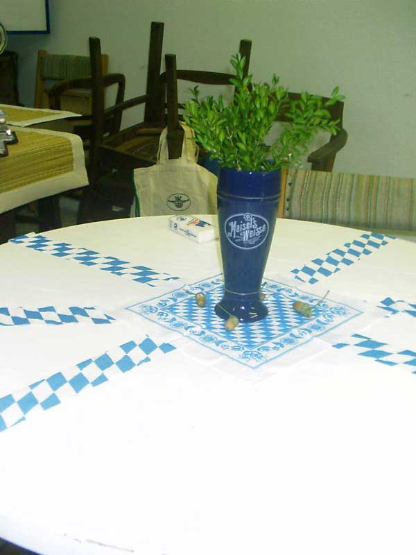 ![]() Die blau-weiße Tischdeko hat auf“s Bild abgefärbt ... |