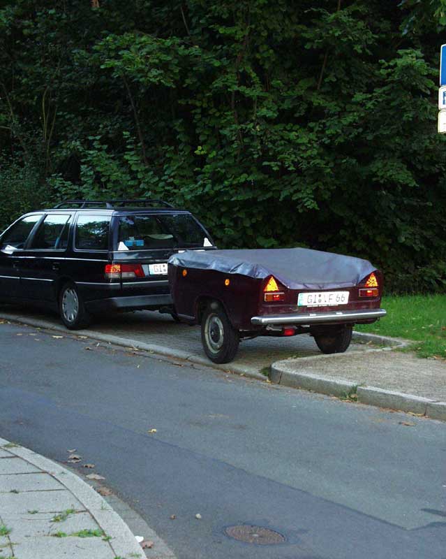 ![]() Der Anhänger stimmt, nur das Zugfahrzeug nicht. Heinz-Jürgen hatte zwar noch am Morgen die Variomatic gewechselt, aber die war noch schlechter als die alte ... |