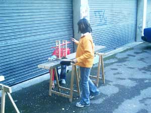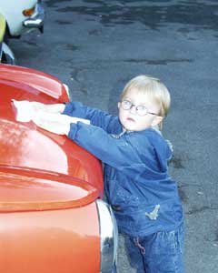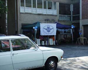 ![]() Während sich die einen sonnen und palavern, muß die Geschäftsfrau ihr Auto pflegen. |