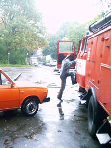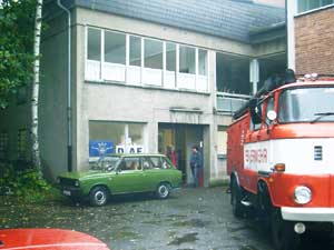 Feuerwehrwagen während einer Rettungsübung eingekeilt worden ist !