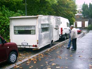 Herman auf dem Weg zum Wohnwagen