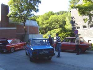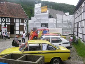 Die ersten Autos stehen, Motorhaube auf und loslästern...