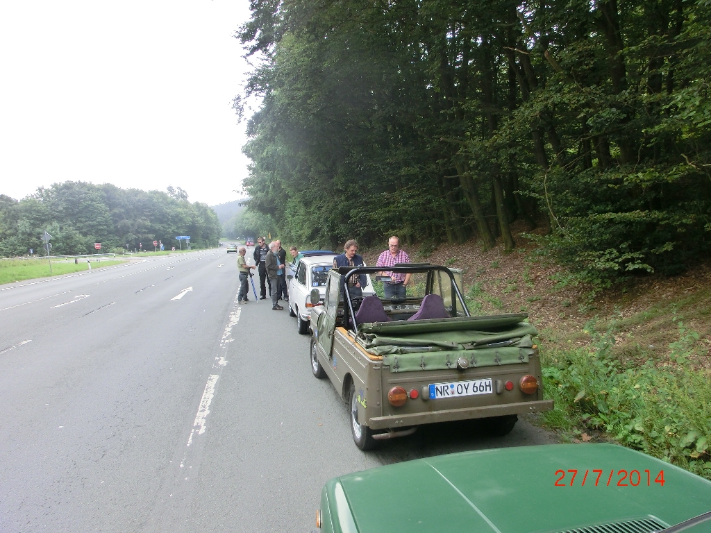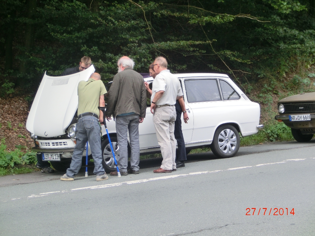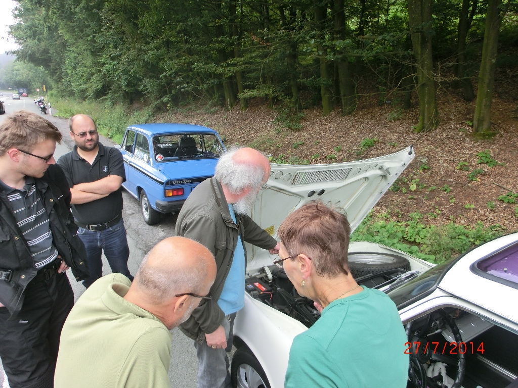 Marion hatte mal eben, weil es ihr im Auto zu warm wurde, die Wasserschläuche zur Heizung abgezogen !