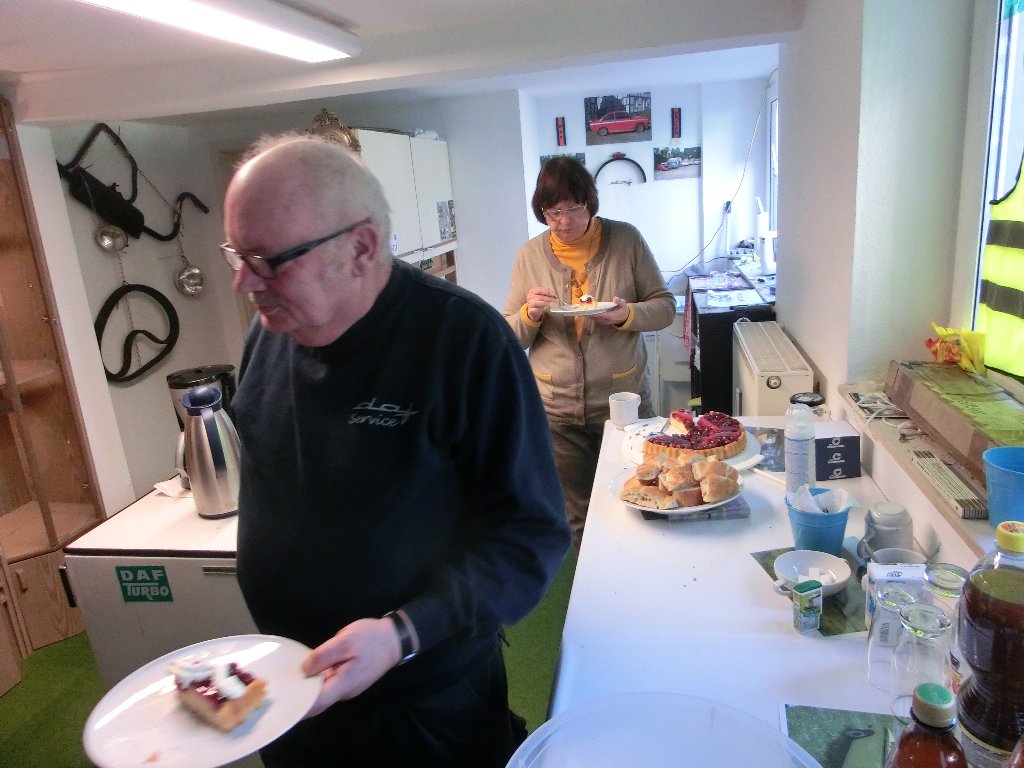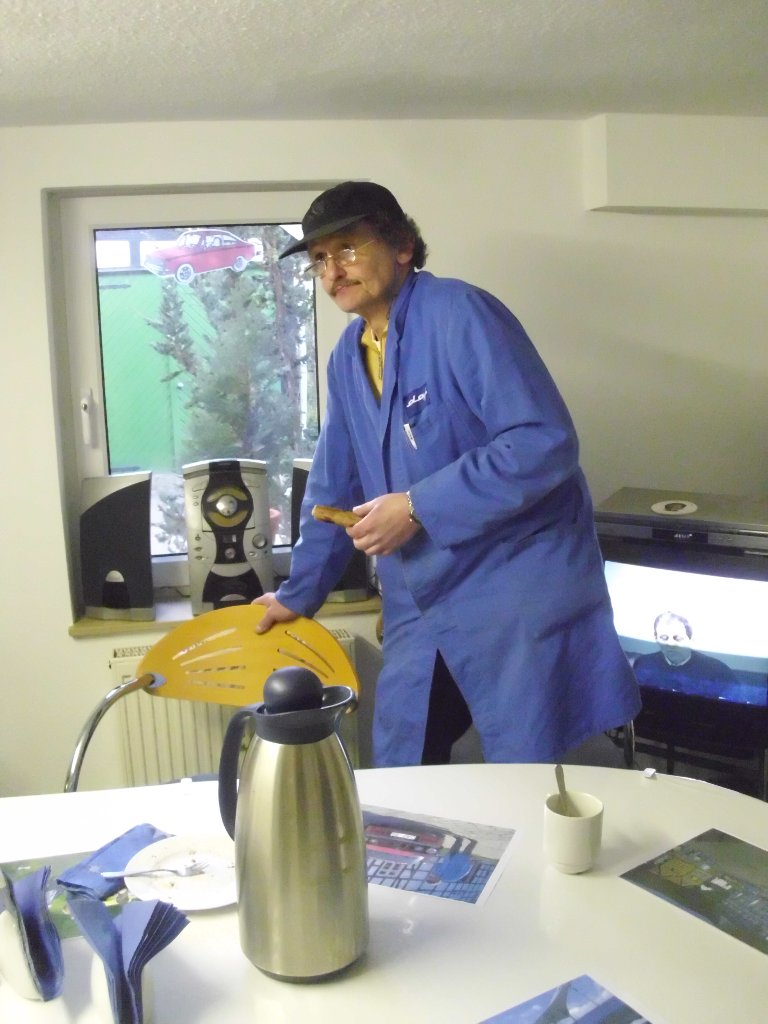 Der Koch ißt das letzte, verbliebene Kuchenstück von Hanne